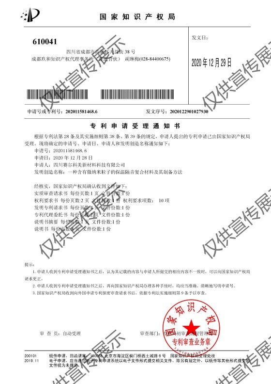 “賽爾科美”志在向全世界用戶提供最先進(jìn)的綠色建材解決方案,引領(lǐng)低碳住宅產(chǎn)業(yè)化革命,用心踐行低碳環(huán)保的綠色建筑產(chǎn)業(yè)化理念。公司研發(fā)團(tuán)隊(duì)歷時(shí)多年,成功的研發(fā)了多個(gè)綠色建筑和生態(tài)環(huán)境新材料,其中核心產(chǎn)品有:MFP無(wú)機(jī)硅聲能凝膠、SEK硅基物保溫系統(tǒng)、SER可變光膜等,均屬國(guó)內(nèi)首創(chuàng),并獲得三十余項(xiàng)國(guó)家專(zhuān)利及《中國(guó)綠色建材三星級(jí)認(rèn)證》。